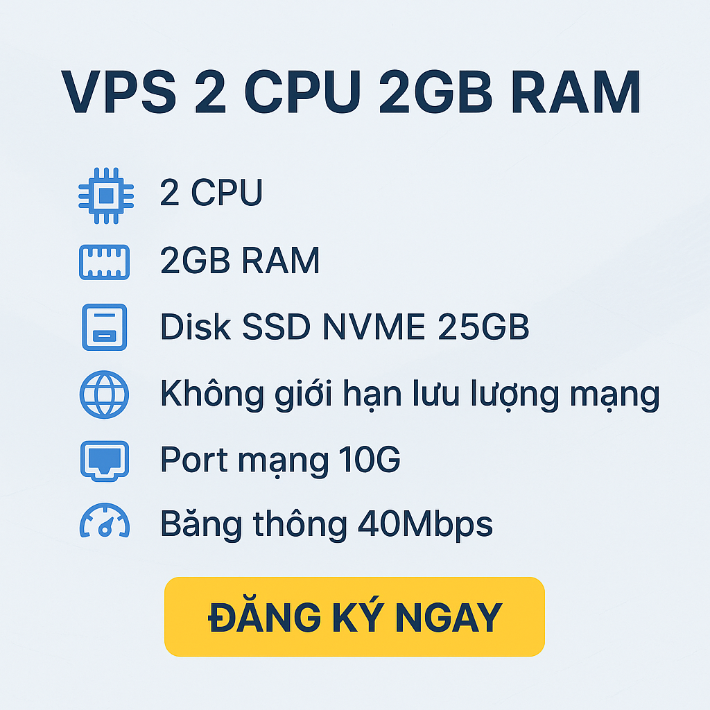 ⚡ Hiệu năng ổn định: 2 CPU – 2GB RAM, đáp ứng nhu cầu xử lý tốt hơn.